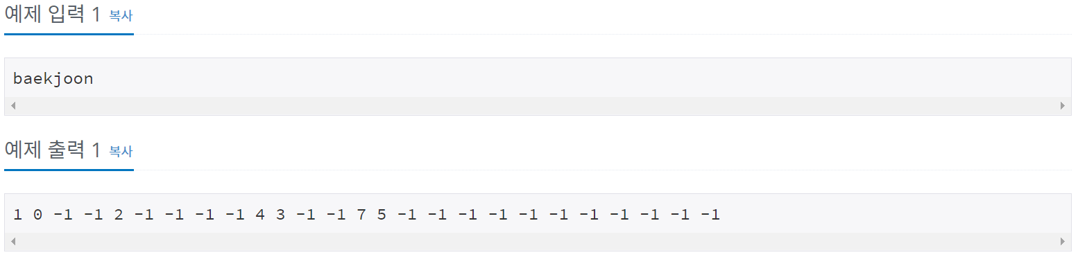 출처 - https://www.acmicpc.net/problem/10809