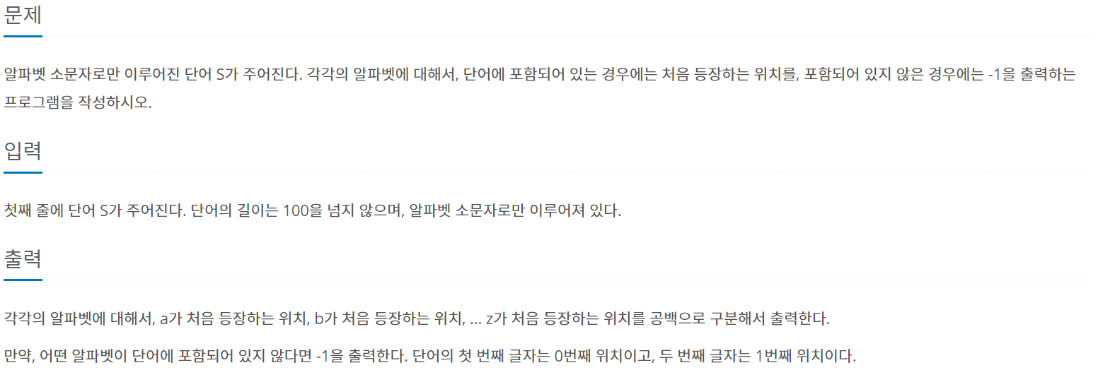 10809번: 알파벳 찾기